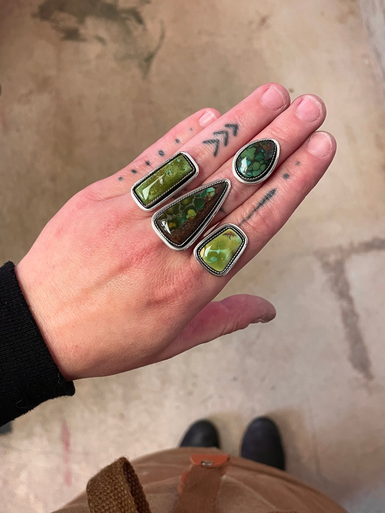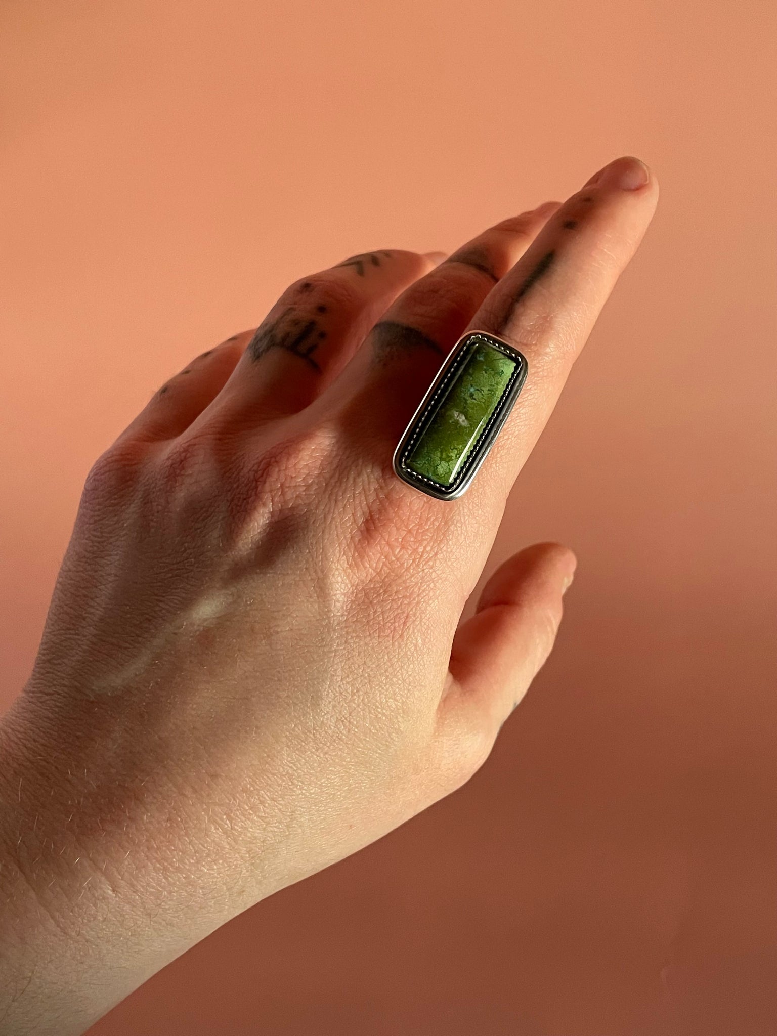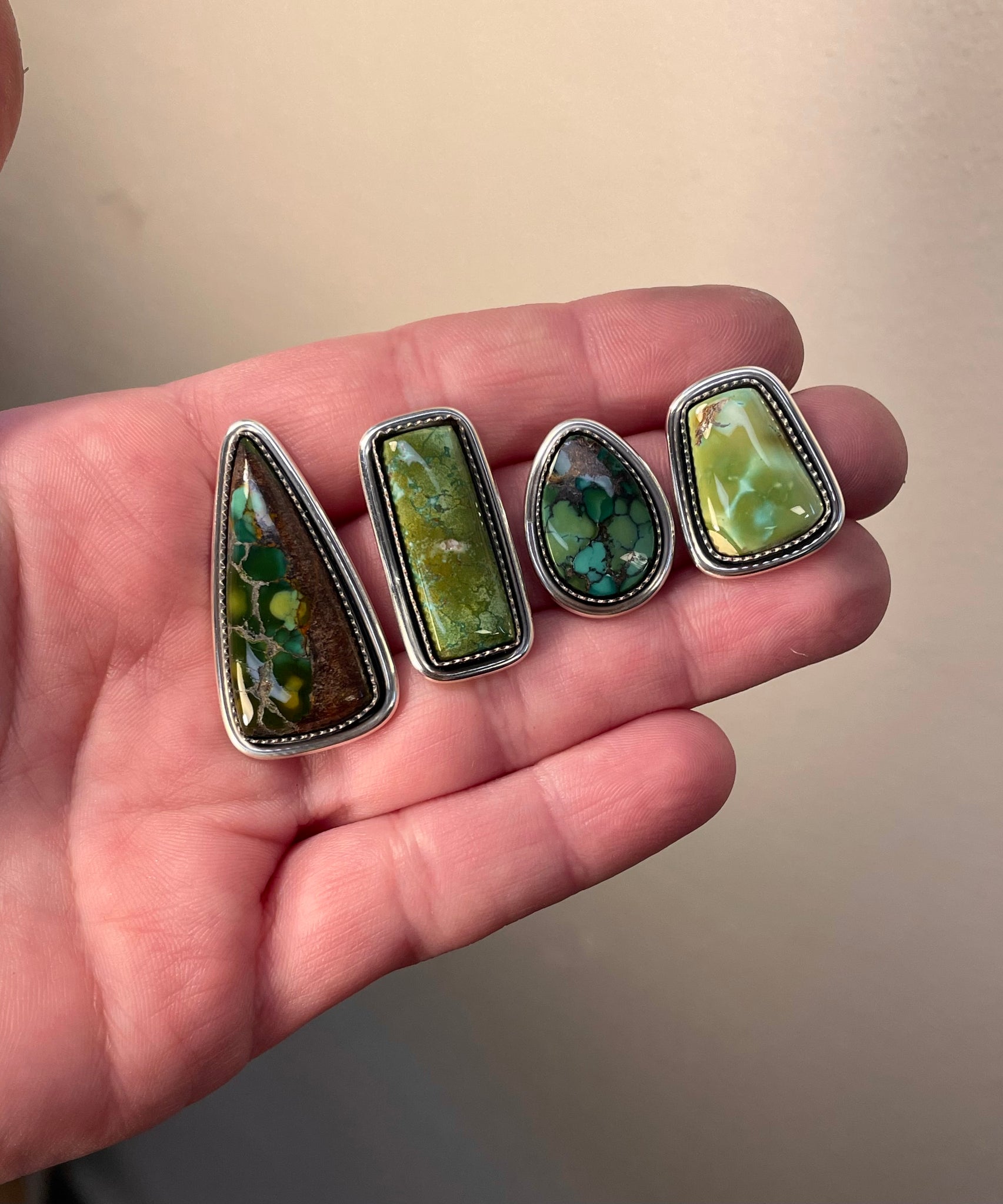 This stunning cut of Hubei Turquoise is ready to be set into a ring or pendant, the choice is yours! I’ve photographed this piece in multiple kinds of lighting so you can get a true sense of the stone’s hue. If you chose a ring, it will be finished with an elegant half round band, fit for comfort. If you’d like to upgrade to a more detailed band please message me on Instagram for design options and additional pricing. If you choose a pendant, It’ll include a simple 18” sterling silver chain to pair it with. This piece will be marked .925 and signed by yours truly, ensuring authenticity. Thanks so much for looking please reach out to me with any inquiries, I’m always happy to chat!