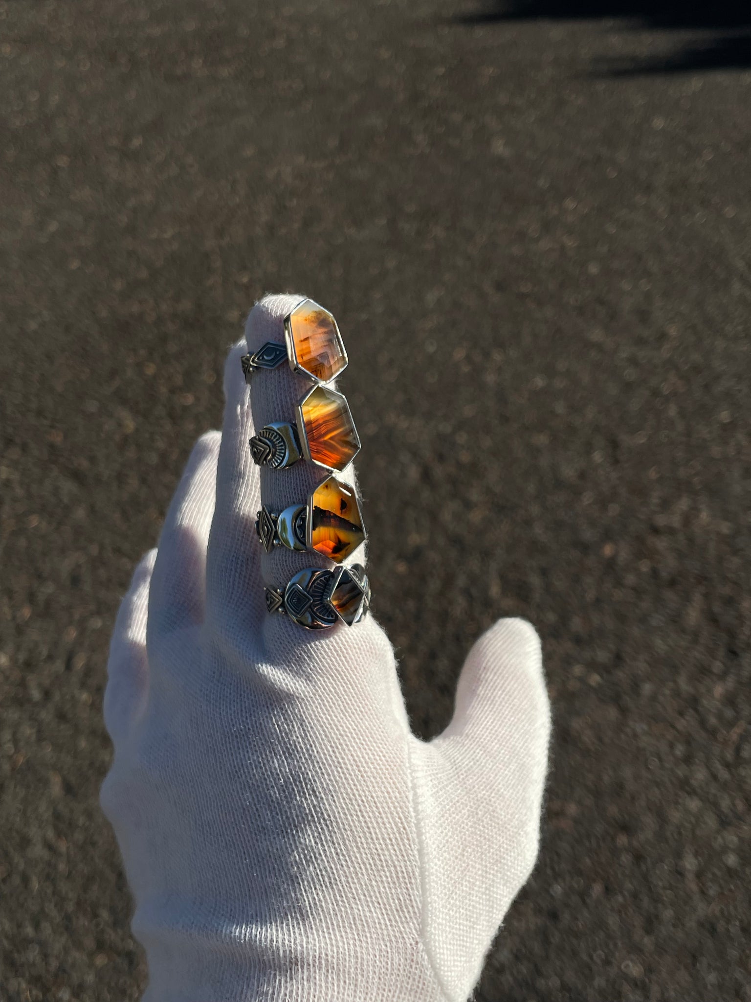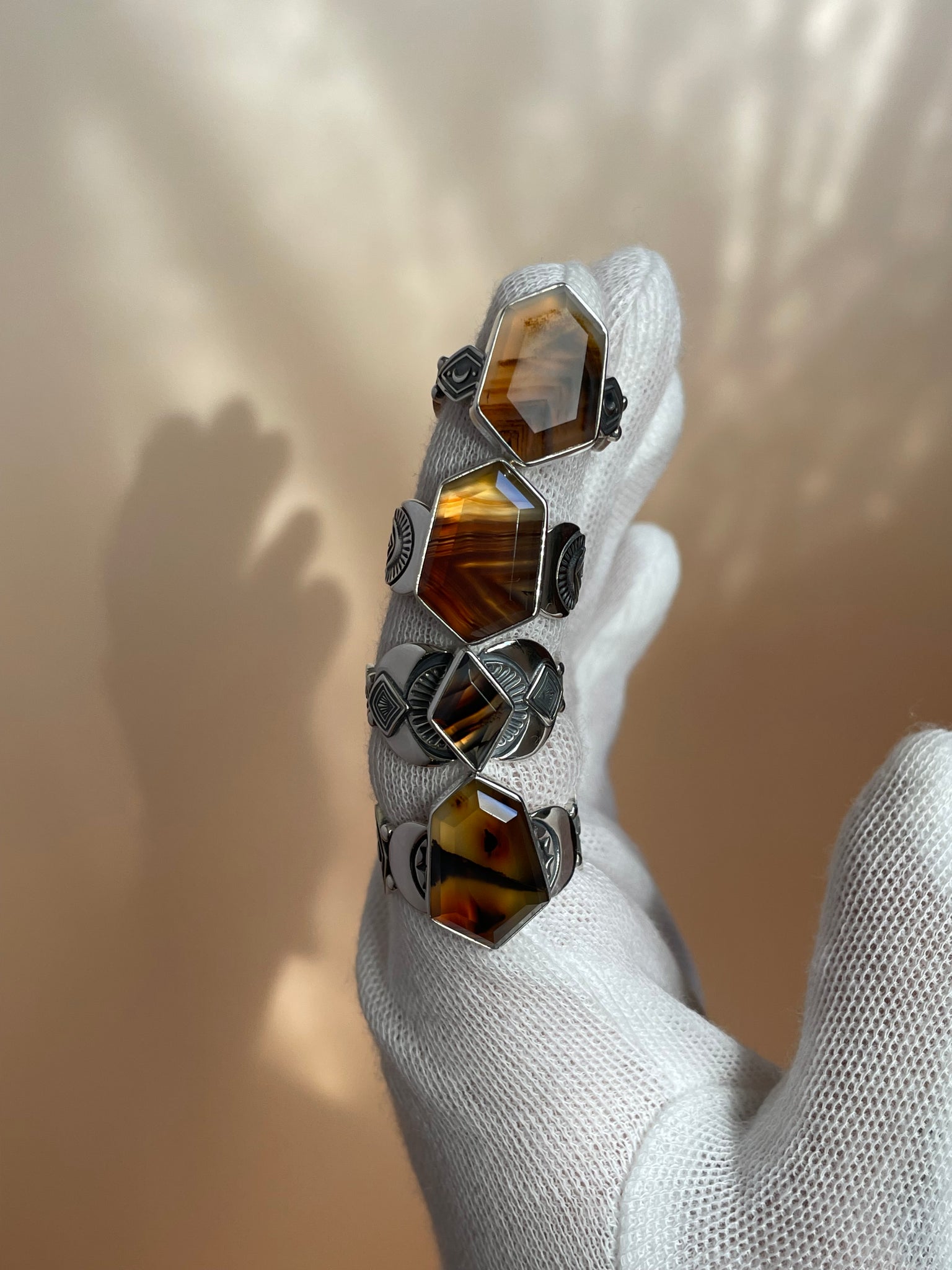This stunning step-cut Montana Agate ring was completely hand fabricated here in my Portland studio. This stone is extremely flashy and is truly one of a kind! All these photos have been taken in Natural lighting, inside and outside so you get a true representation of the stones color!  This ring fits a size 7.75 best. This piece has been marked .925 and is signed by yours truly! Thank you so much for looking, please reach out to me on Instagram with additional questions.